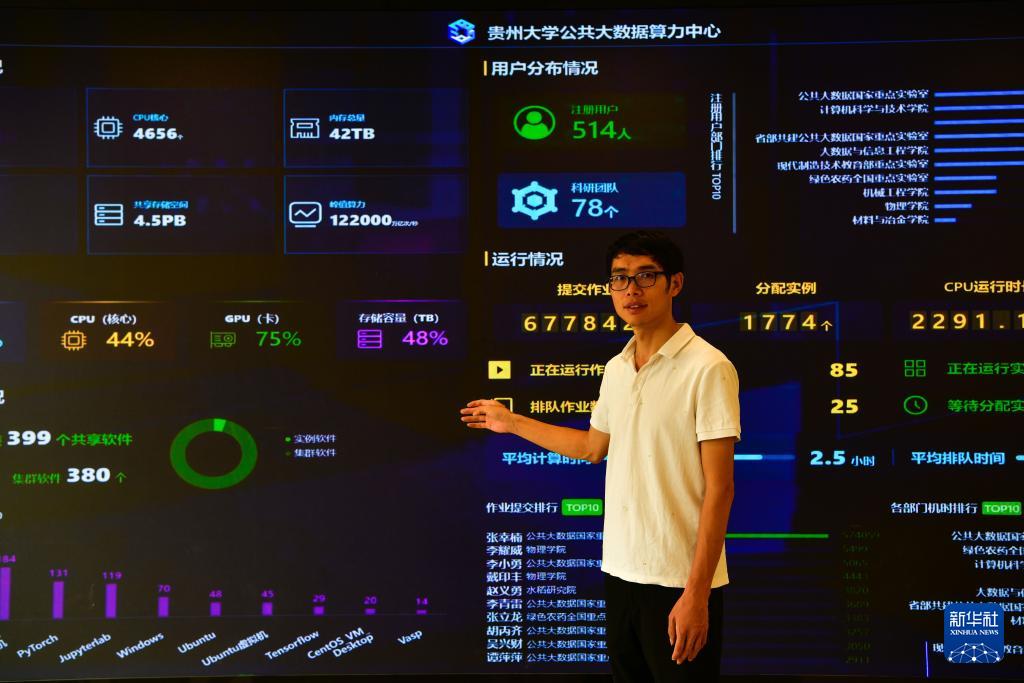 8月29日,工作人員在貴州大學(xué)省部共建公共大數(shù)據(jù)國家重點實驗室算力中心作介紹。