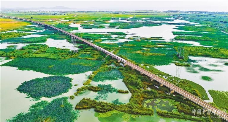 8月29日,高鐵列車從安徽省合肥市肥東縣十八聯(lián)圩生態(tài)濕地駛過(guò)。今年4月,濕地修復(fù)三期工程成功入選“聯(lián)合國(guó)生態(tài)系統(tǒng)恢復(fù)十年”行動(dòng)案例并向全球展示。