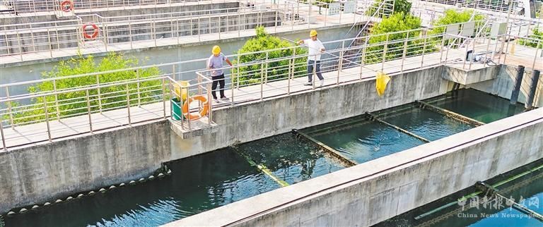 8月30日,技術(shù)人員在肥東縣長(zhǎng)臨河鎮(zhèn)生活污水處理廠巡檢。