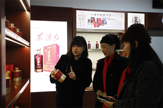 工作人員向顧客介紹東陽紅醬酒。