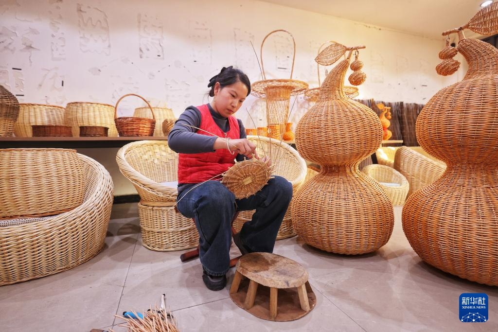 2月18日,山東莘縣古城鎮(zhèn)前三里營村共富工坊,柳編技藝傳承人在編織杞柳工藝品。