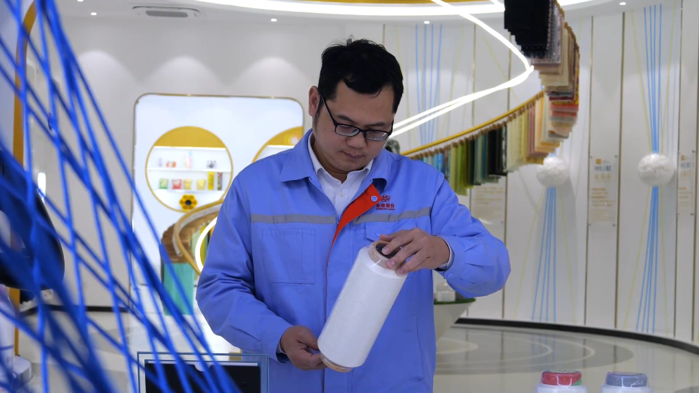 福建永榮錦江自主創(chuàng)新的環(huán)保再生綠色產(chǎn)品“愛賽綸”。新華社記者 宓盈婷、林凱 攝