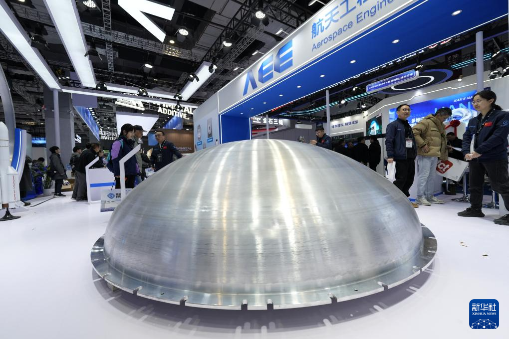 3月17日在第十一屆亞洲3D打印、增材制造展覽會(huì)上展示的3D打印的運(yùn)載火箭燃料貯箱箱底。