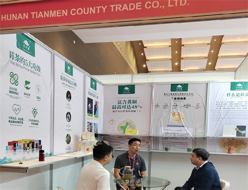 在展會(huì)期間,張家界天門郡展位前熱鬧非凡,搶著品鑒風(fēng)味迥異的莓茶、詢問(wèn)該茶的特性及健康功效,熟知張家界莓茶的幾位華人與王劍經(jīng)理商洽代理拓展印尼市場(chǎng)的意愿;自郴州臨武的東山云霧茶業(yè)展位人來(lái)人往,在品鑒其帶來(lái)的野生紅茶、綠茶后,紛紛稱贊其口感及品質(zhì),尤其是具有功能性補(bǔ)鈣功效的觀辣木葉茶,不少華人搶著購(gòu)買,其中2位還與胡武品董事長(zhǎng)達(dá)成了紅茶、觀辣木葉茶的銷售合作