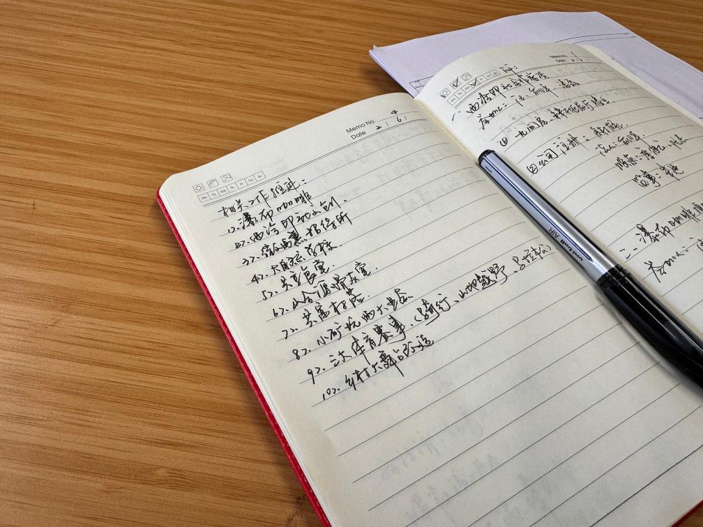 汪玉成低頭翻動著手中的紅皮筆記本。這一天,從會議到洽談,他記錄了多頁內(nèi)容。汪玉成的手停留在其中一頁,上面清晰地列著今年余村要推進(jìn)的工作,有體育賽事,有文創(chuàng)產(chǎn)品,也有共富村落。