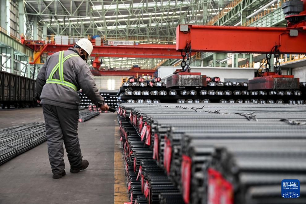2月20日,工人在內(nèi)蒙古興安盟烏蘭浩特市烏蘭浩特鋼鐵有限責(zé)任公司雙高棒車(chē)間對(duì)產(chǎn)品進(jìn)行掃碼出庫(kù)。