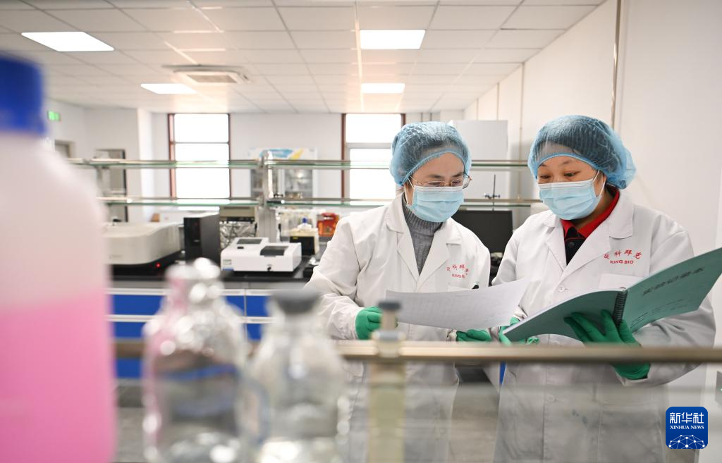 在位于京津中關(guān)村科技城的中科拜克(天津)生物藥業(yè)有限公司,研發(fā)人員在實驗室內(nèi)對比實驗數(shù)據(jù)(2月20日攝)。