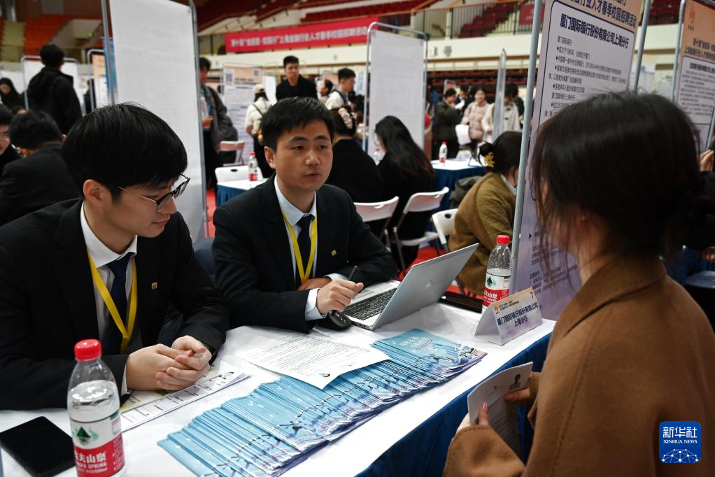 3月4日,在招聘活動(dòng)現(xiàn)場(chǎng),一家企業(yè)工作人員向大學(xué)生介紹招聘信息。