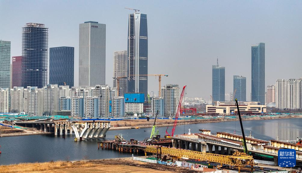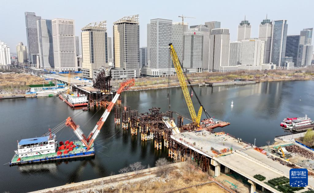 這是3月13日拍攝的位于天津市濱海新區(qū)的于新橋施工現(xiàn)場(chǎng)(無人機(jī)照片)。