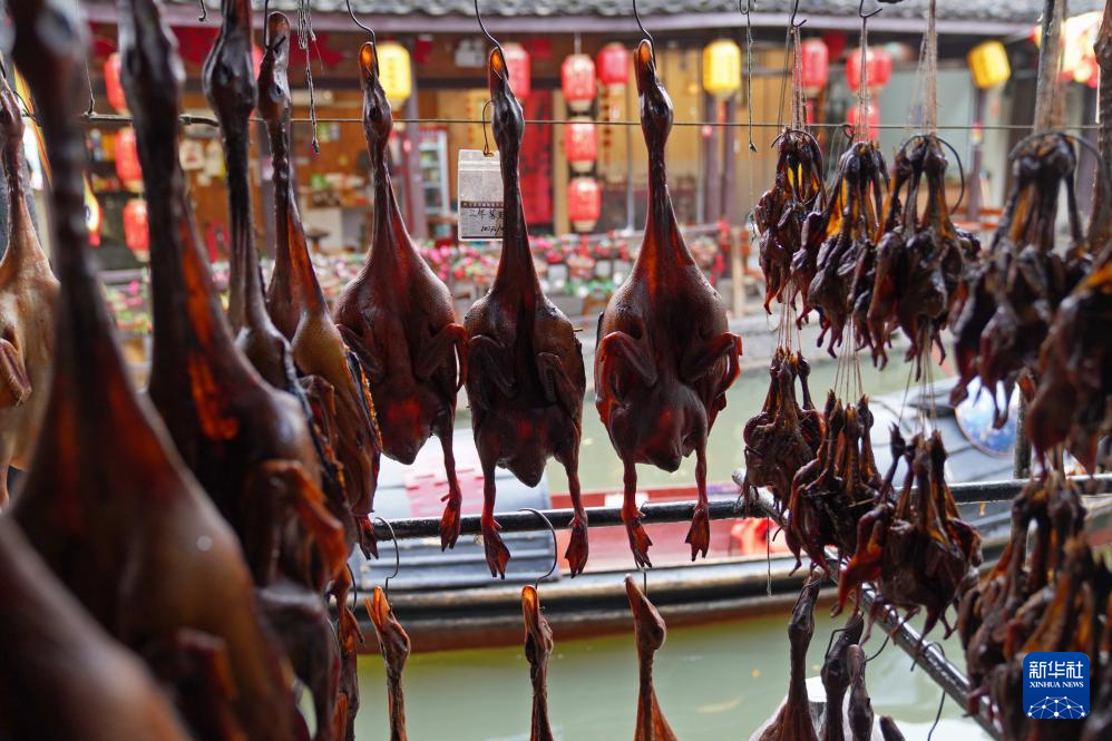 3月29日在安昌古鎮(zhèn)拍攝的臘味食品。