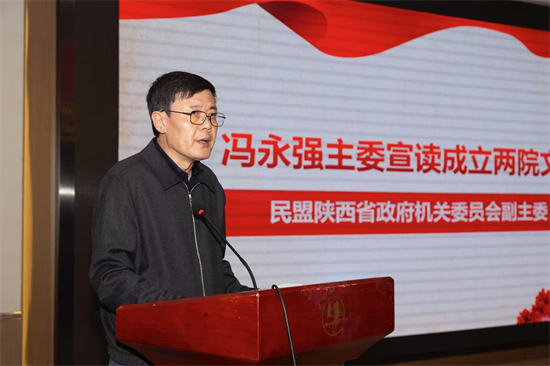 民盟陜西省政府機(jī)關(guān)委員會副主委馮永強(qiáng)宣讀成立“兩院”文件