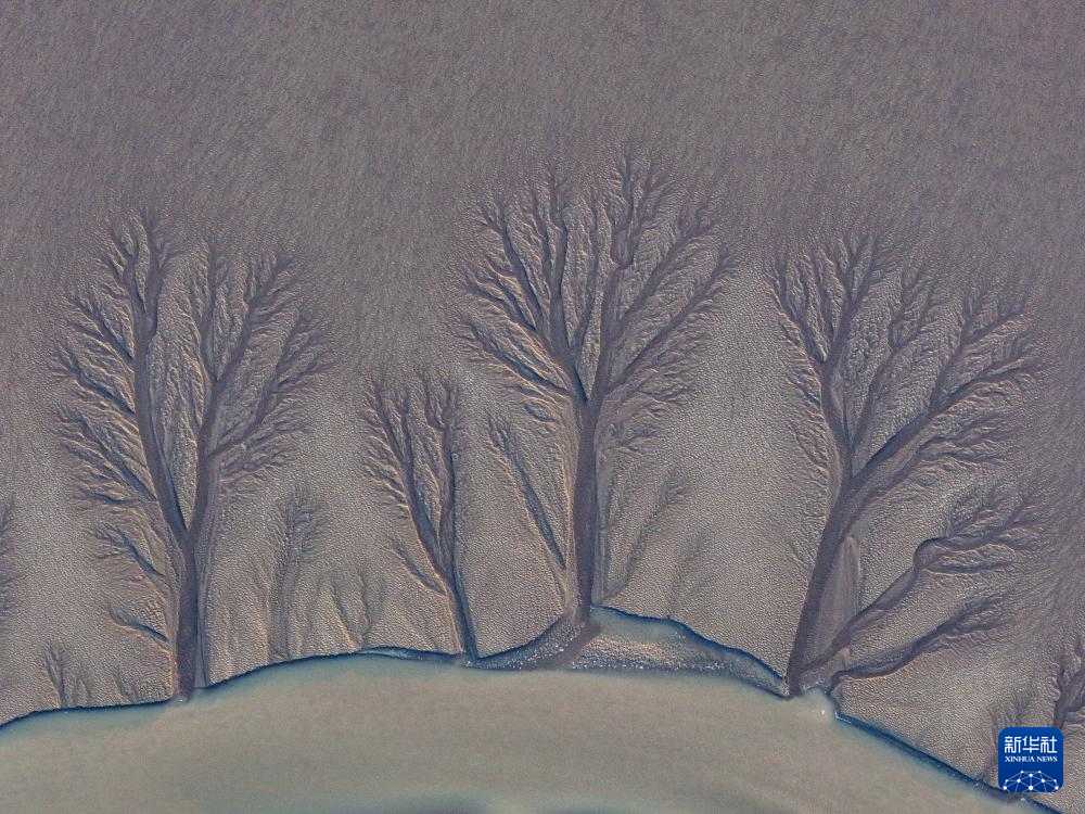 這是2024年10月29日在鹽城市東臺(tái)條子泥濕地拍攝的“潮汐樹”(無(wú)人機(jī)照片)。