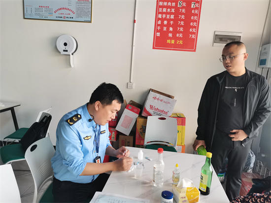 近日,兩市塘市場監(jiān)督管理所組織執(zhí)法力量對轄區(qū)內(nèi)的早餐、夜宵店開展罌粟殼快速檢測,嚴(yán)厲打擊餐飲行業(yè)中罌粟殼非法添加行為,切實保障廣大群眾“舌尖上的安全”。