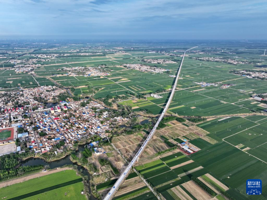 河北省清河縣境內(nèi)的雄商高鐵建設(shè)現(xiàn)場(4月27日攝,無人機(jī)照片)。
