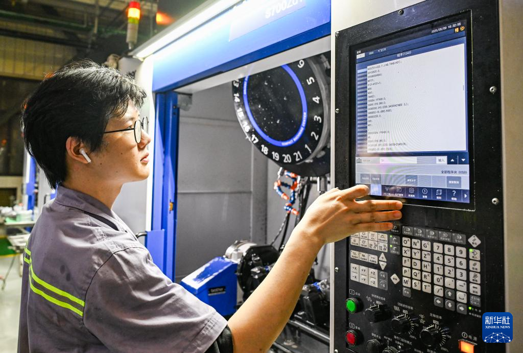 這是5月9日在位于北碚區(qū)的重慶順多利機(jī)車有限責(zé)任公司精工基地拍攝的自動(dòng)化生產(chǎn)作業(yè)現(xiàn)場(chǎng)。