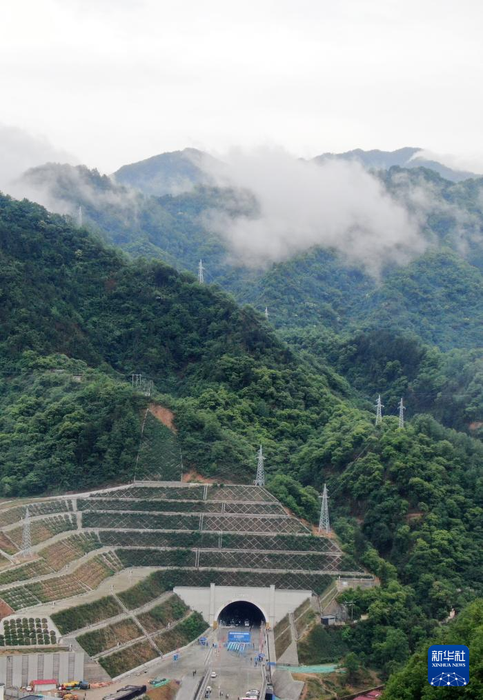 5月13日拍攝的西康高鐵秦嶺九天山隧道(無(wú)人機(jī)照片)。