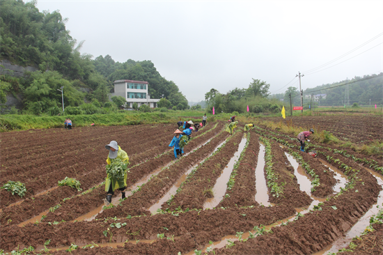 連日來,煙雨濛濛,但在湖南省攸縣寧家坪鎮(zhèn)下灣村一個名叫坳里的大垅里,顯得一片繁忙,駐村工作隊、鎮(zhèn)村干部、黨員,高舉紅旗,拉著橫幅,領(lǐng)頭組織近百勞力,在這廣闊的田野里,有的分苗、有的扦插……大規(guī)模掀起熱火朝天的30萬株煙薯苗的移栽高潮。