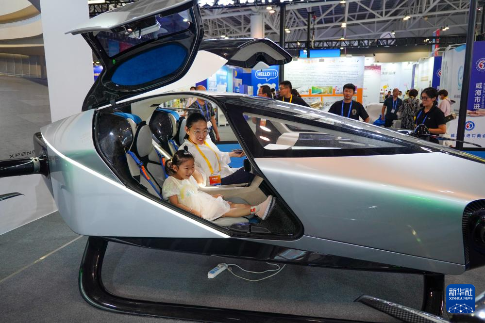 6月27日,在第四屆RCEP區(qū)域(山東)進(jìn)口商品博覽會(huì)中國(guó)商品展區(qū),參觀者在體驗(yàn)展出的電動(dòng)飛行器。