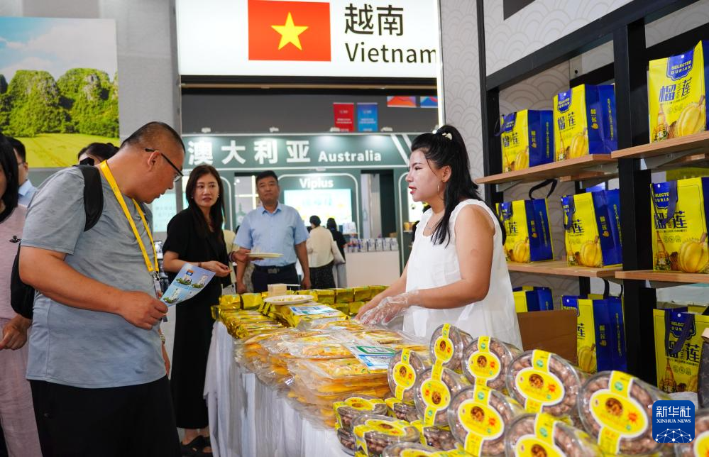 6月27日,在第四屆RCEP區(qū)域(山東)進(jìn)口商品博覽會(huì)越南商品展位,參觀者在觀看產(chǎn)品。