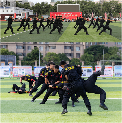 宣傳活動,在雄壯的《國歌》聲中拉開序幕,陜西獵鷹守衛(wèi)保安服務(wù)公司保安員李秋成作了表態(tài)發(fā)言。匯報科目演練分為三個篇章:第一篇章基本技能演練。由陜西向陽保安服務(wù)有限公司、陜西超潔泰宏保安有限公司、陜西宏遠保安服務(wù)公司分別進行了擒敵拳和綜合格斗術(shù)、單兵隊列動作、交通手勢操科目匯報表演;第二篇章實戰(zhàn)技能演練。由陜西聯(lián)軍保安服務(wù)公司、咸陽金盾護衛(wèi)有限責任公司分別進行了防暴隊形、押運反搶劫科目匯報表演;第三篇章科技賦能演練。由西安振遠護衛(wèi)有限公司、陜西凱久鼎衛(wèi)保安服務(wù)有限公司分別進行了無人機熱成像搜救、消防噴水滅火、載重救援和巡護犬搜索、抓捕及服從等綜合科目匯報表演,向社會各界展示了保安行業(yè)科技發(fā)展與保安隊伍建設(shè)的良好風貌。全體參加活動人員集體參觀了主會場保安裝備展覽演示,在咸陽警保聯(lián)動“平安前哨”點觀摩了由陜西獵鷹守衛(wèi)保安服務(wù)公司匯報的校園突發(fā)事件處置演練,并集體前往黨建教育基地——趙夢桃紀念館進行了黨建教育學習。