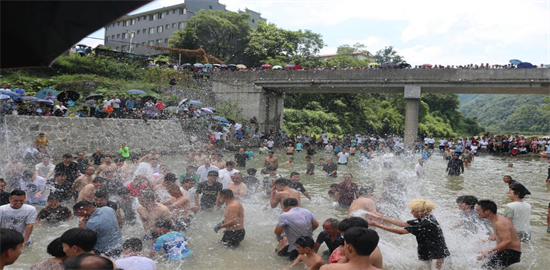 “湘黔邊界區(qū)域勞務協(xié)作暨慶八一民族團結(jié)聯(lián)歡盛會”捉魚活動現(xiàn)場    楊曼達攝