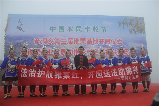 鄉(xiāng)村振興,產(chǎn)業(yè)先行;產(chǎn)業(yè)發(fā)展,法治護航。9月21日,彥洞鄉(xiāng)錐栗產(chǎn)業(yè)開園活動在黃門村舉行,錐栗作為當(dāng)?shù)刂еa(chǎn)業(yè),帶動眾多農(nóng)戶增收。彥洞鄉(xiāng)平安法治辦、司法所、派出所等相關(guān)部門借活動契機,將法律知識送到田間地頭,活動現(xiàn)場,普法宣傳員通過設(shè)咨詢臺、發(fā)手冊、面對面交流,聚焦錐栗產(chǎn)業(yè)中的土地流轉(zhuǎn)、合同簽訂、產(chǎn)品安全等問題,普及《民法典》《土地管理法》;針對農(nóng)戶關(guān)心的土地流轉(zhuǎn),提醒重視合同規(guī)范性,明確權(quán)利義務(wù)、留存證據(jù),避免糾紛;強調(diào)“產(chǎn)品質(zhì)量安全至上”,引導(dǎo)農(nóng)戶規(guī)范種植加工,助力錐栗產(chǎn)業(yè)做強做大,讓特色產(chǎn)業(yè)成為鄉(xiāng)村振興“金鑰匙”。