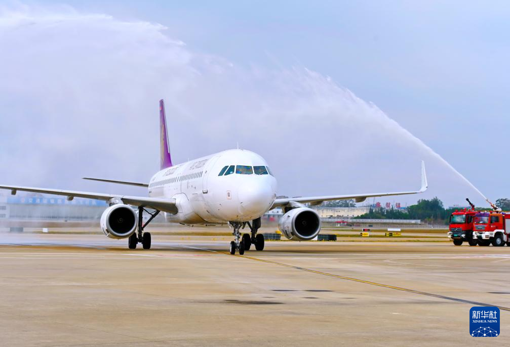 10月26日,從金邊飛來的柬埔寨國(guó)家航空的客機(jī)抵達(dá)福州長(zhǎng)樂國(guó)際機(jī)場(chǎng)時(shí)舉行過“水門”儀式。