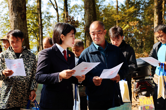 一株古樹歷經(jīng)百年風(fēng)霜,一片“紅軍林”承載代代記憶。為扎實(shí)推進(jìn)保護(hù)工作,四部門多次會(huì)商研判,提前深入當(dāng)?shù)亻_展普法宣傳:向村民細(xì)致解讀《古樹名木保護(hù)條例》,發(fā)放宣傳材料,積極倡導(dǎo)群眾化身“古樹管家”,通過(guò)定期觀察生長(zhǎng)狀態(tài)、及時(shí)反饋異常情況,共同守護(hù)這份生態(tài)與歷史財(cái)富。