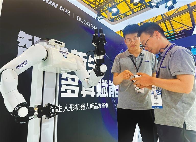 7月9日,位于浦東新區(qū)的中科新松有限公司,工作人員對人形機器人進行測試。目前,浦東機器人企業(yè)超過100家,核心企業(yè)產(chǎn)值達100多億元。 朱 琳攝 (中經(jīng)視覺)