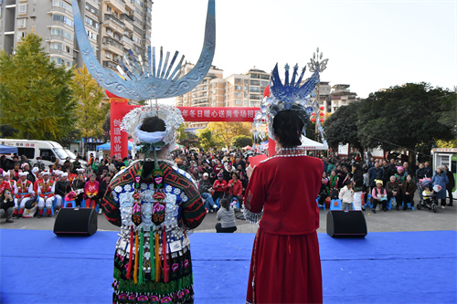 11月21日,貴州省凱里市洗馬河街道法治廣場,招聘會(huì)文藝匯演活動(dòng)現(xiàn)場。(楊仁海 攝)