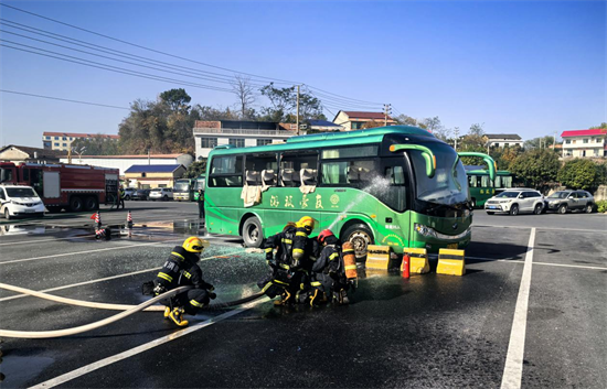 演練模擬客運(yùn)車(chē)輛突發(fā)交通事故,圍繞道路交通事故應(yīng)急救援設(shè)置應(yīng)急救援、現(xiàn)場(chǎng)救治等貼近“實(shí)戰(zhàn)”科目。