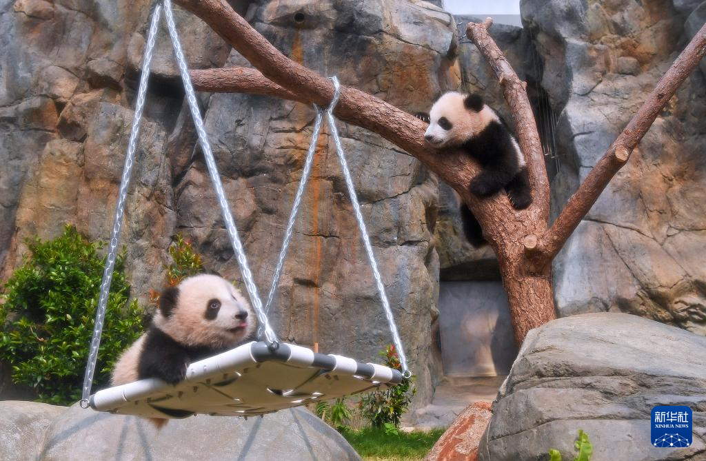 當(dāng)日,香港海洋公園為首對(duì)龍鳳胎大熊貓寶寶舉行亮相儀式,并慶祝它們半歲生日。這對(duì)龍鳳胎大熊貓寶寶將于2月16日正式與公眾見面。