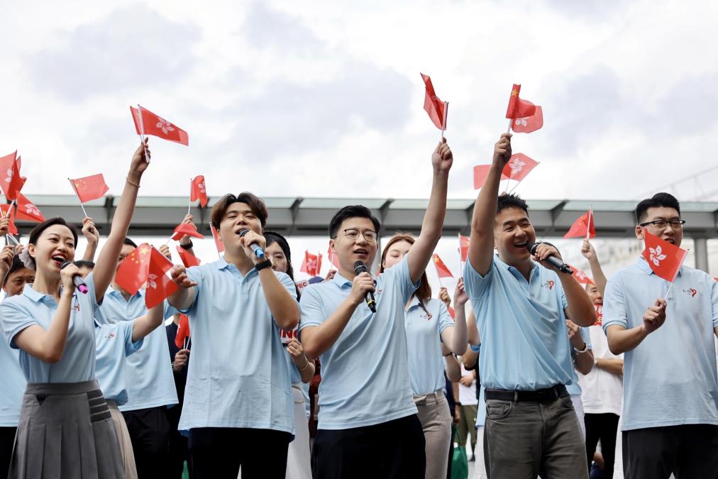 當(dāng)天,香港社會(huì)各界人士以各種形式為祖國(guó)、為香港獻(xiàn)上祝福。