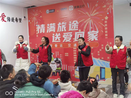 緊接著,長沙交警現(xiàn)場開展了春運交通安全宣傳,通過案例講解、互動問答,為大家普及交通安全知識,送上獎品交警小熊的同時也送上了春節(jié)美好祝福。啟動儀式在既是腦癱家長也是慢天使愛心屋義工們帶領大家齊聲合唱的一曲《聽我說謝謝你》中落幕。來自邵陽的婷婷小朋友和爺爺成為第一批受助群眾,他們乘坐滴滴出行提供的愛心專車前往汽車南站,登上了回家的大巴。