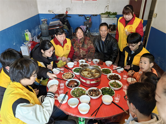 走進(jìn)屋里,義工們各自為李爸李媽送上了精心準(zhǔn)備的新年禮物。大家圍坐在一起,傾聽他們講述過去的故事和如今的生活,義工們用真誠的話語給予安慰和鼓勵,讓李爸李媽感受到了久違的溫暖與理解。另一部分義工分工合作,洗菜、切菜、做飯和打掃衛(wèi)生……趁著共進(jìn)午餐的間隙,黃新芝給“爸媽”親手送上了新年紅包。