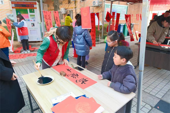 活動(dòng)現(xiàn)場,墨香四溢,書法愛好者們揮毫?xí)鴮懶麓鹤8#环郝?lián)承載著美好寓意。特別設(shè)置的“老少共書”環(huán)節(jié),不僅讓青少年領(lǐng)略了書法的魅力,更促進(jìn)了與老年人的情感交流,讓尊老愛老的傳統(tǒng)美德得以傳承。
