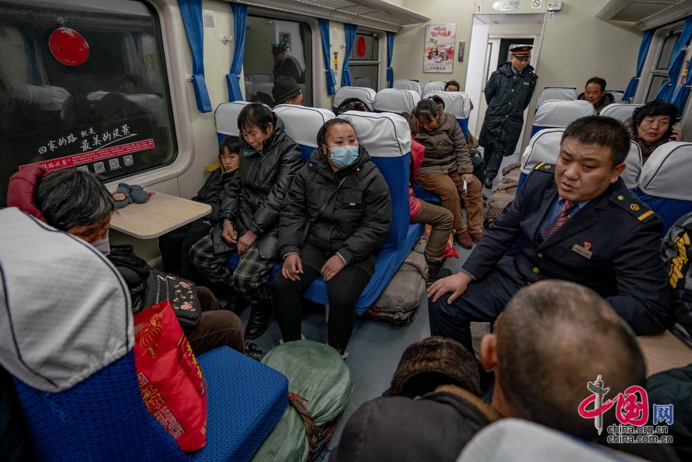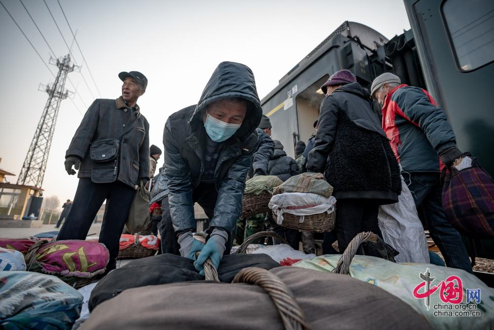 車站工作人員引導(dǎo)“大筐隊(duì)”有序上車。中國網(wǎng)記者 鄭亮攝