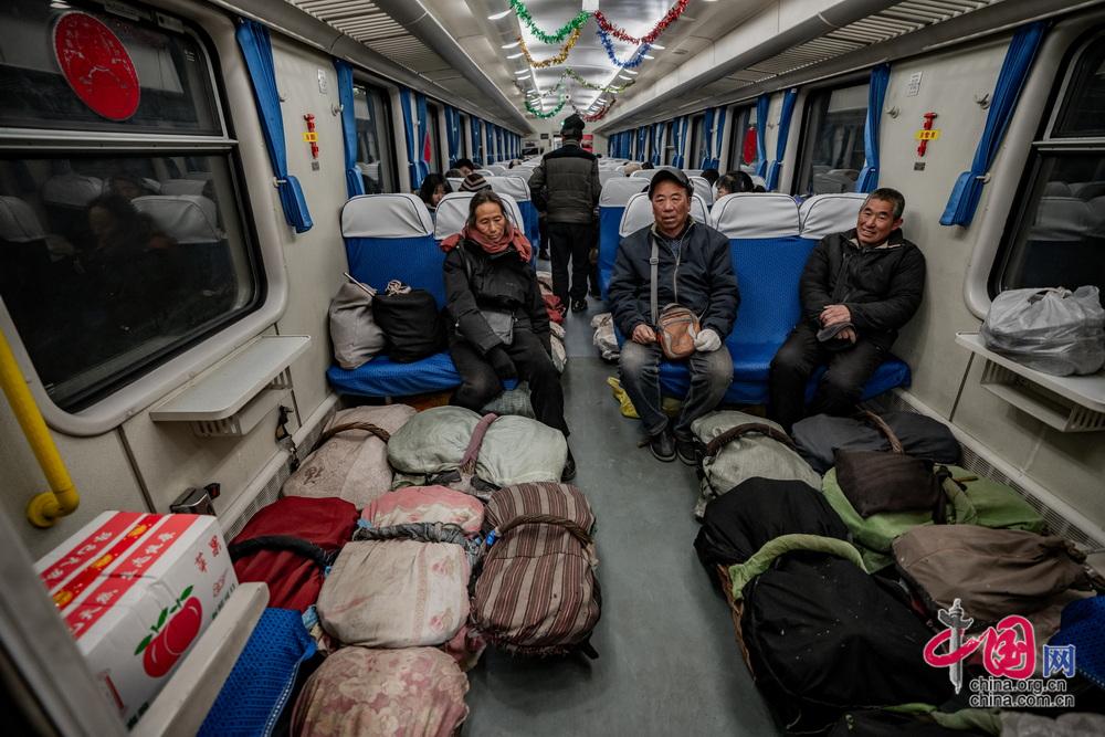 列車員會(huì)幫助“大筐隊(duì)”整理貨物并留出安全通道。中國網(wǎng)記者 鄭亮攝