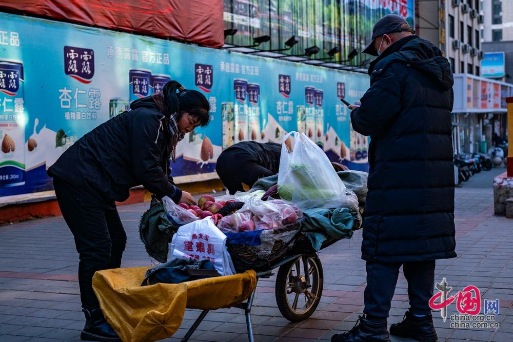 到達(dá)承德站后,“大筐隊(duì)”推著貨物出站準(zhǔn)備售賣。中國網(wǎng)記者 鄭亮攝