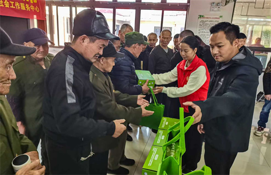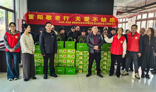 2025年10月28日,明天就是一年一度的重陽節(jié),今天上午,安徽藍野農(nóng)業(yè)科技有限公司下屬蛋小盒品牌創(chuàng)始人及總經(jīng)理方城會同廬江佰善社會工作服務(wù)中心工作人員來到安徽省合肥市廬江縣白山鎮(zhèn)養(yǎng)老服務(wù)中心,將梨花土雞蛋、梨花土雞蛋雞蛋糕、鐵皮石斛雞蛋面等一批價值3000多元的“敬老”產(chǎn)品送到老人手里,并祝福老人們節(jié)日快樂,健康長壽。 (巢志斌 攝)