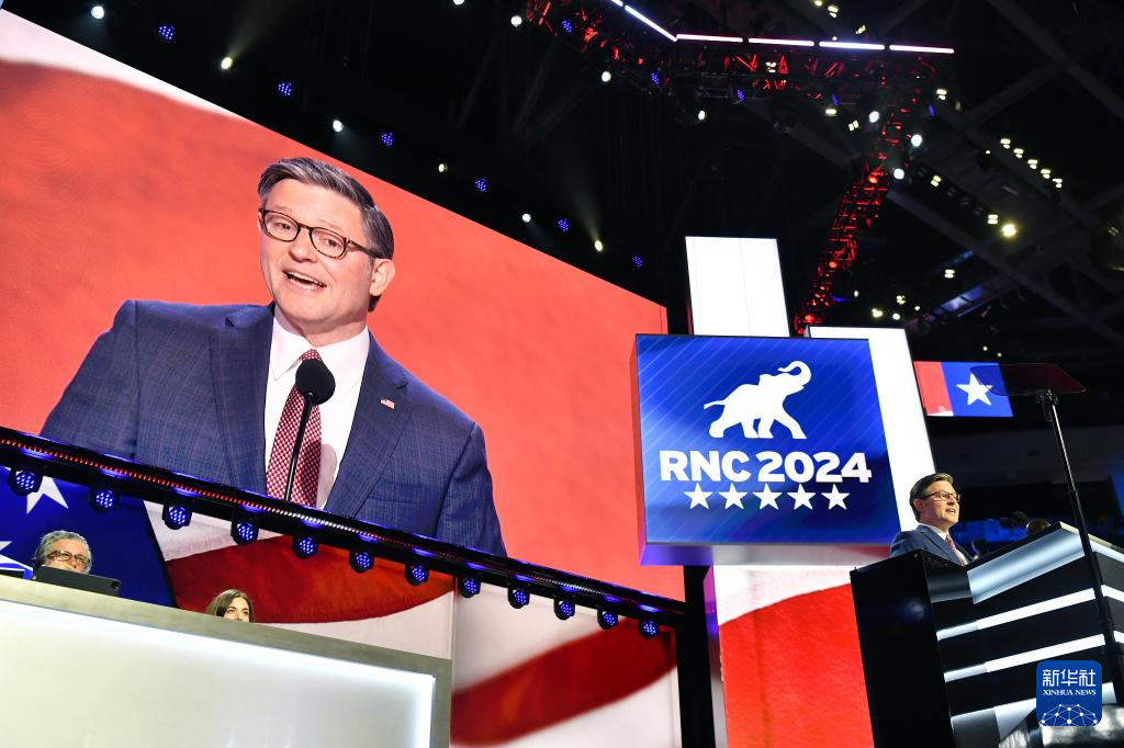 這是邁克·約翰遜在美國密爾沃基舉行的共和黨全國代表大會上講話的資料照片(2024年7月15日攝)。