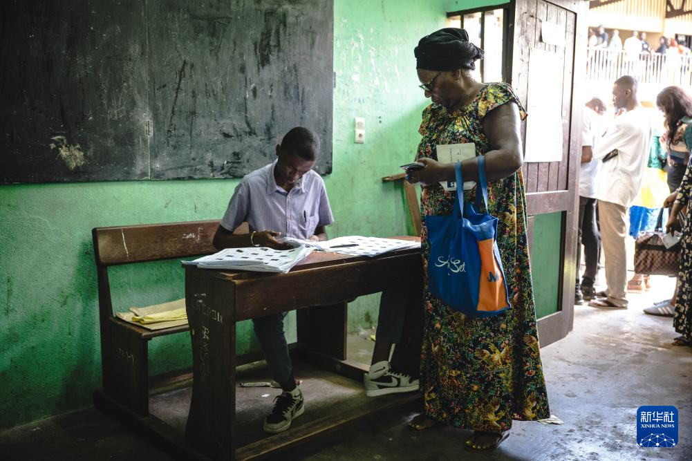 4月12日,市民在位于加蓬首都利伯維爾的一處投票站投票。