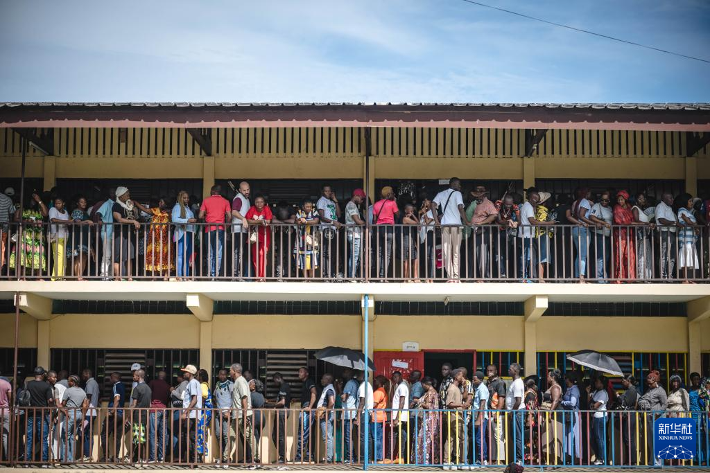4月12日,市民在位于加蓬首都利伯維爾的一處投票站排隊等待投票。