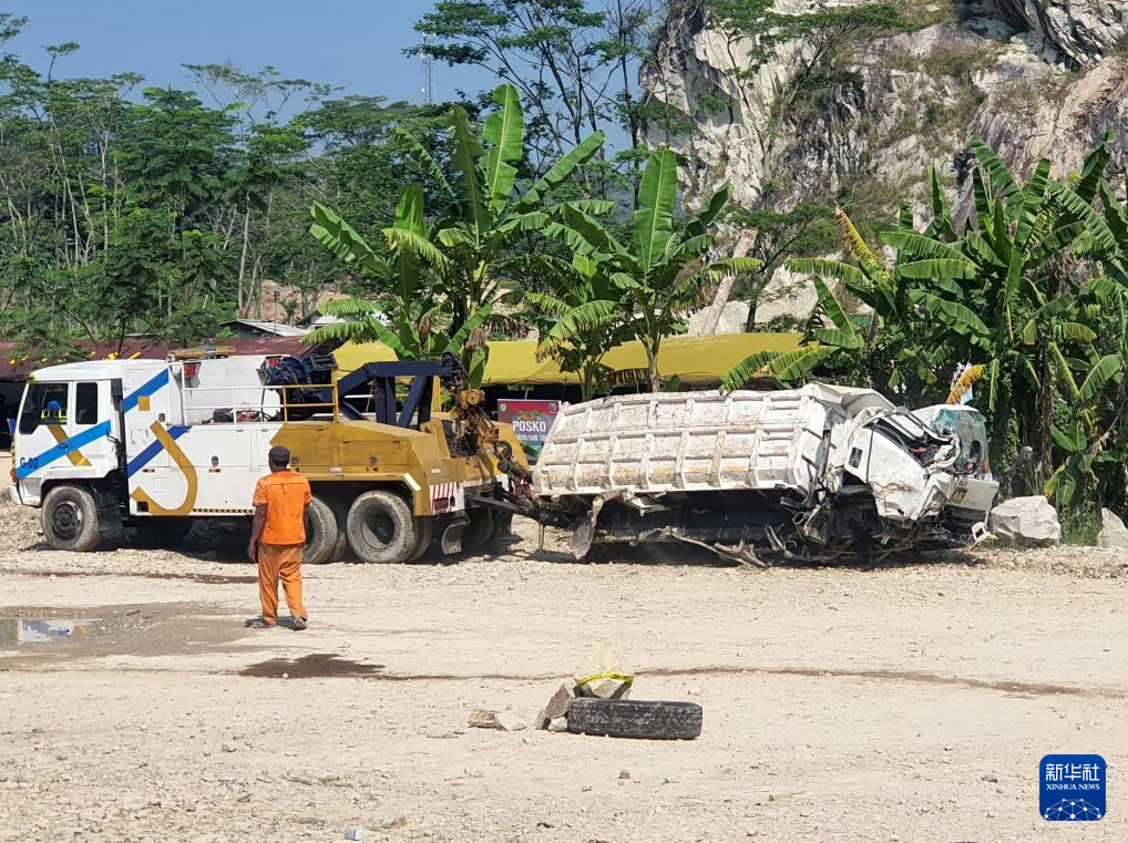 5月31日,在印度尼西亞西爪哇省井里汶,卡車在事發(fā)采石場附近轉移受損車輛。