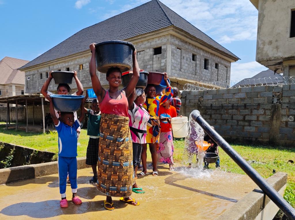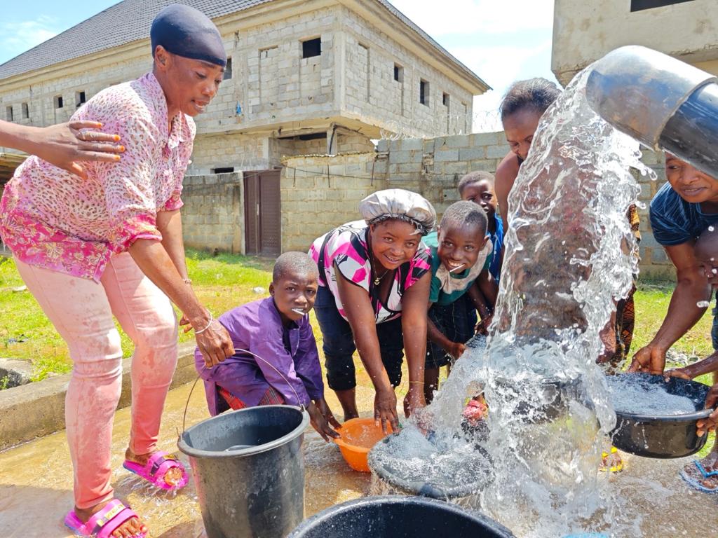 2024年10月9日,尼日利亞阿布賈居民在阿布賈大供水項(xiàng)目中體驗(yàn)試取水。新華社發(fā)(中地海外尼日利亞有限公司供圖)
