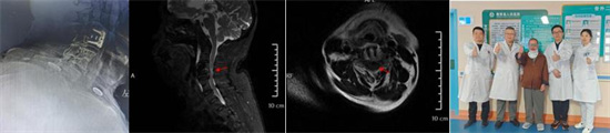 為確保手術(shù)成功,骨科二區(qū)專家團(tuán)隊(duì)與湘雅三醫(yī)院苗驚雷教授緊密協(xié)作,在麻醉科和手術(shù)室的配合下,成功為患者實(shí)施頸前路椎間盤切除術(shù)+椎管擴(kuò)大減壓術(shù)+植骨融合內(nèi)固定術(shù),患者術(shù)后即感四肢肌力明顯改善,目前恢復(fù)良好,已順利出院。