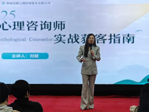 次日課程聚焦實務與成長。黎志華教授針對兒童青少年心理問題提出系統(tǒng)性干預策略;羽翼心理總經(jīng)理劉慧老師則圍繞"咨詢師獲客思路"與"正念自我關(guān)懷"展開分享,助力從業(yè)者實現(xiàn)專業(yè)與心理的雙重成長。羅興偉教授帶領(lǐng)的接納承諾療法(ACT)現(xiàn)場演練,進一步強化了參與者在心理靈活性訓練中的實操能力。