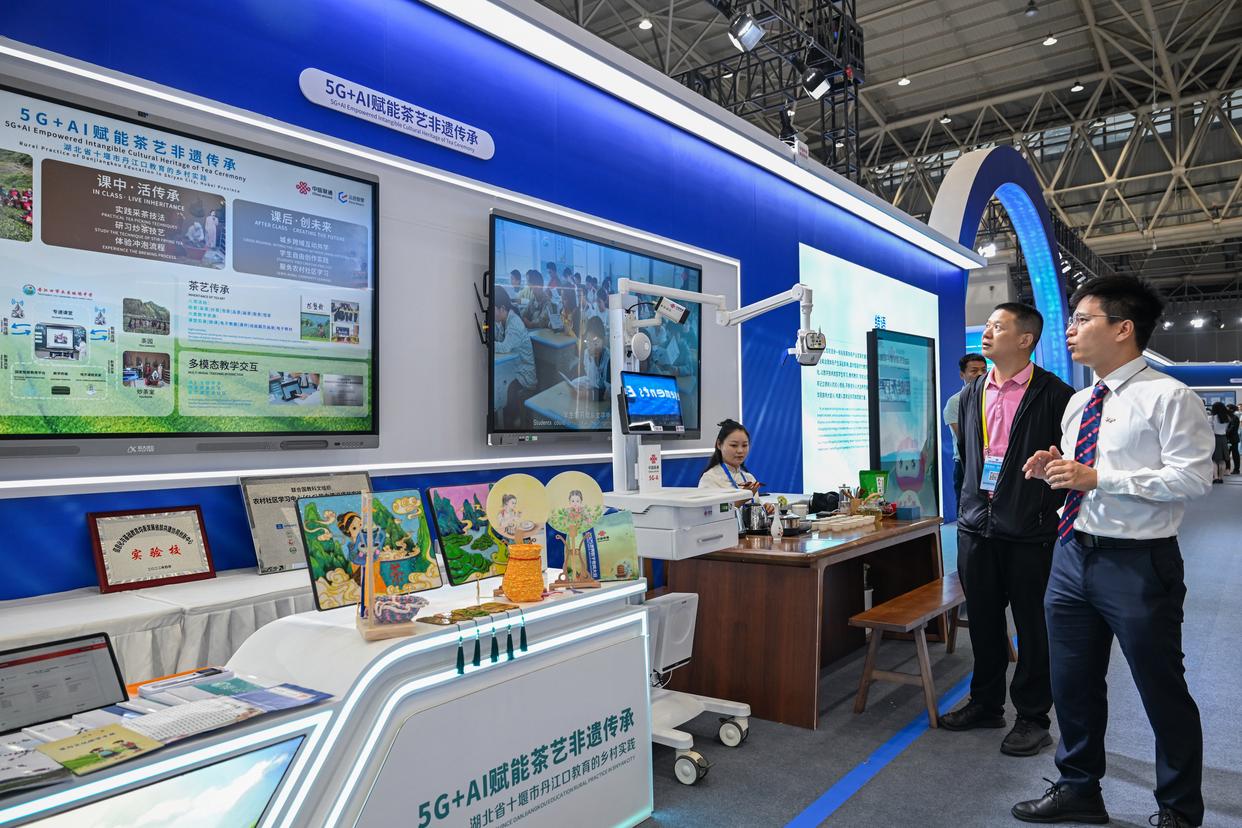 5月14日,參觀者在2025世界數(shù)字教育大會教育數(shù)字化成果展上參觀。新華社記者 杜子璇 攝