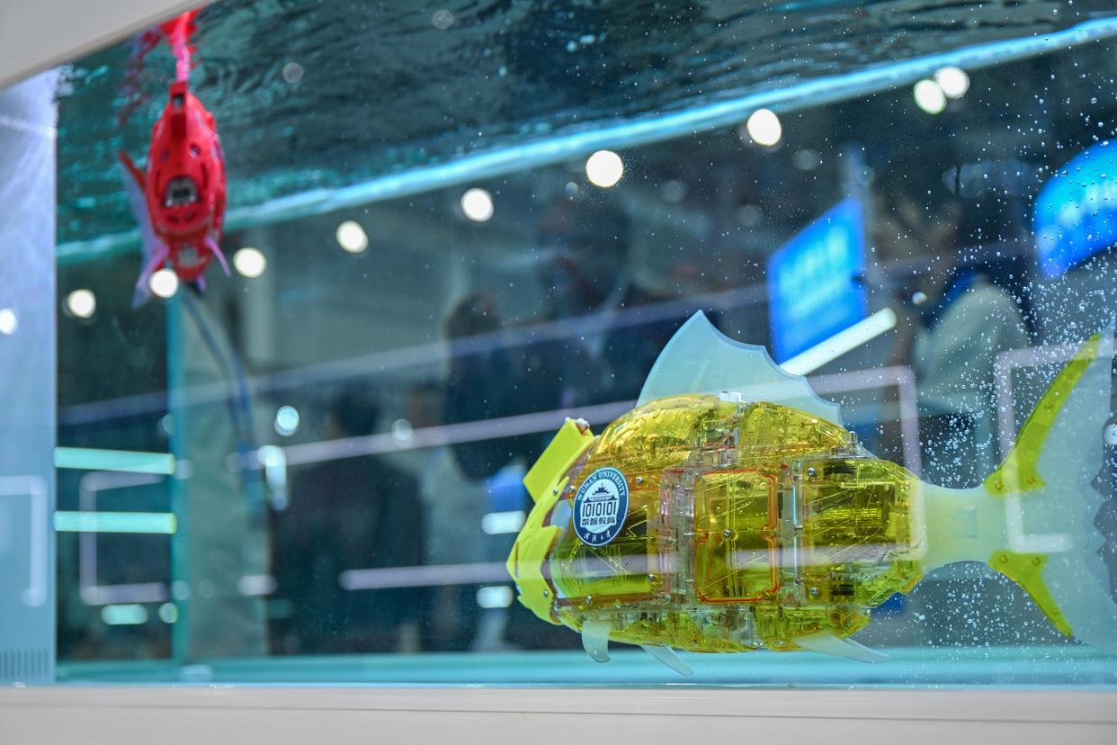 5月14日,參觀者在2025世界數(shù)字教育大會教育數(shù)字化成果展上參觀智能仿生魚。新華社記者 杜子璇 攝