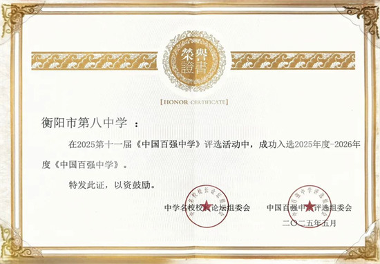 衡陽(yáng)市第八中學(xué)連續(xù)十一屆入選“中國(guó)百?gòu)?qiáng)中學(xué)”!